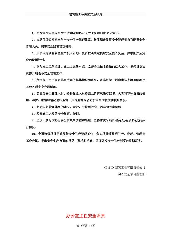 建筑施工各崗位安全職責(zé)docx