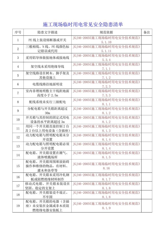 施工現(xiàn)場(chǎng)臨時(shí)用電常見安全隱患清單doc