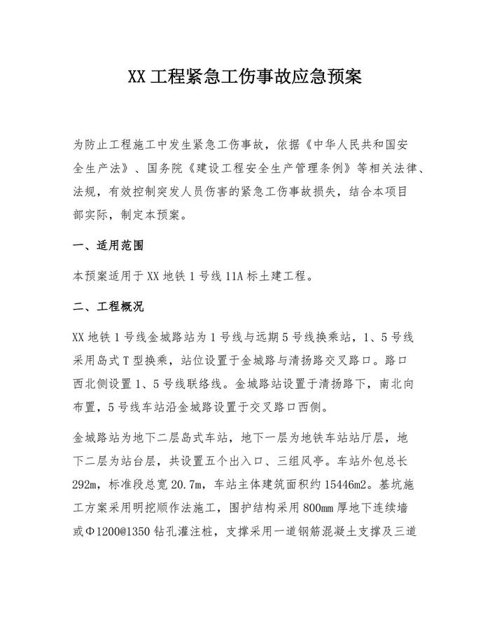 XX工程緊急工傷事故應(yīng)急預(yù)案(8頁)docx