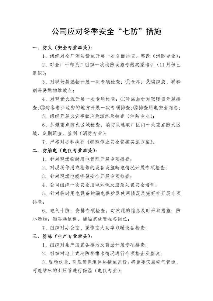 公司應(yīng)對冬季安全“七防”措施docx