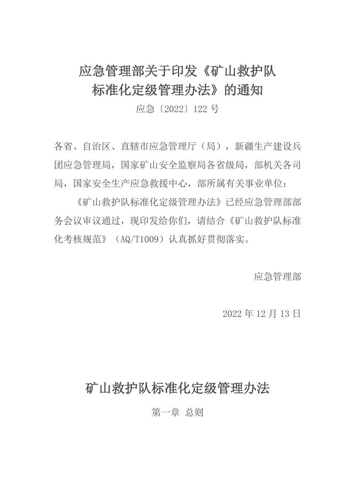2023年1月實施《礦山救護隊標準化定級管理辦法》docx