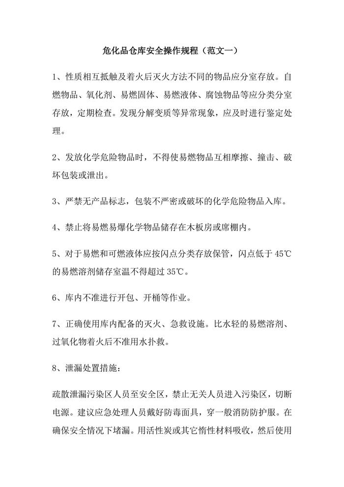 危化品庫安全操作規(guī)程范文2篇doc