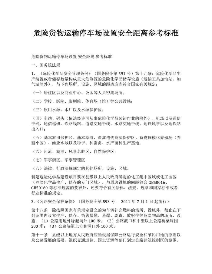 危險(xiǎn)貨物運(yùn)輸停車場設(shè)置安全距離參考標(biāo)準(zhǔn)docx