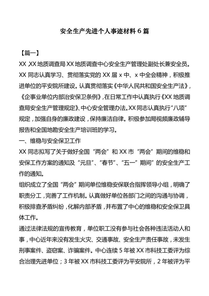 個(gè)人安全先進(jìn)事跡材料6篇docx
