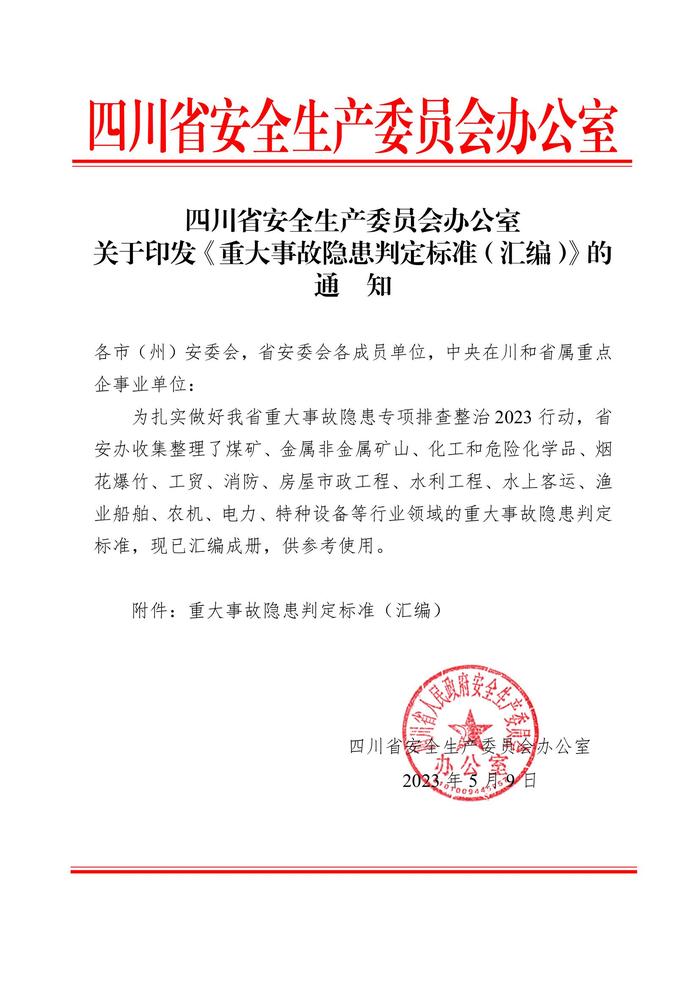 官方發(fā)布:2023重大事故隱患判定標準匯編pdf