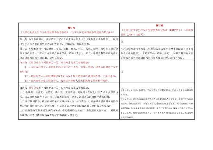 《工貿(mào)行業(yè)重大生產(chǎn)安全事故隱患判定標(biāo)準(zhǔn)》修訂前后對比docx