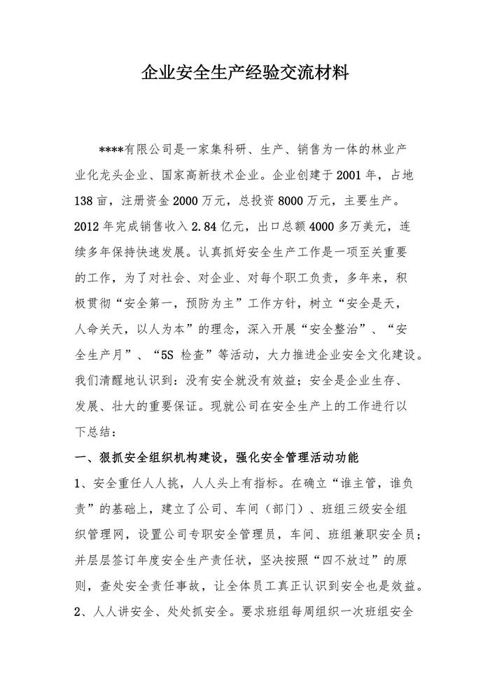 XX公司安全生產(chǎn)先進(jìn)經(jīng)驗交流材料(9頁)docx