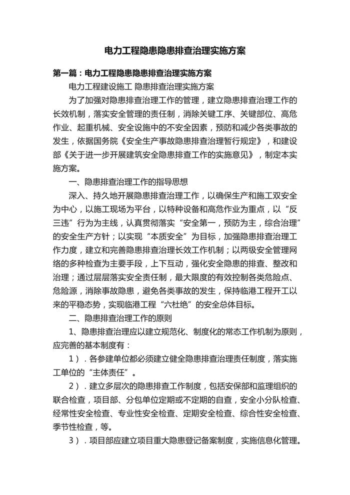 電力工程隱患隱患排查治理實施方案docx