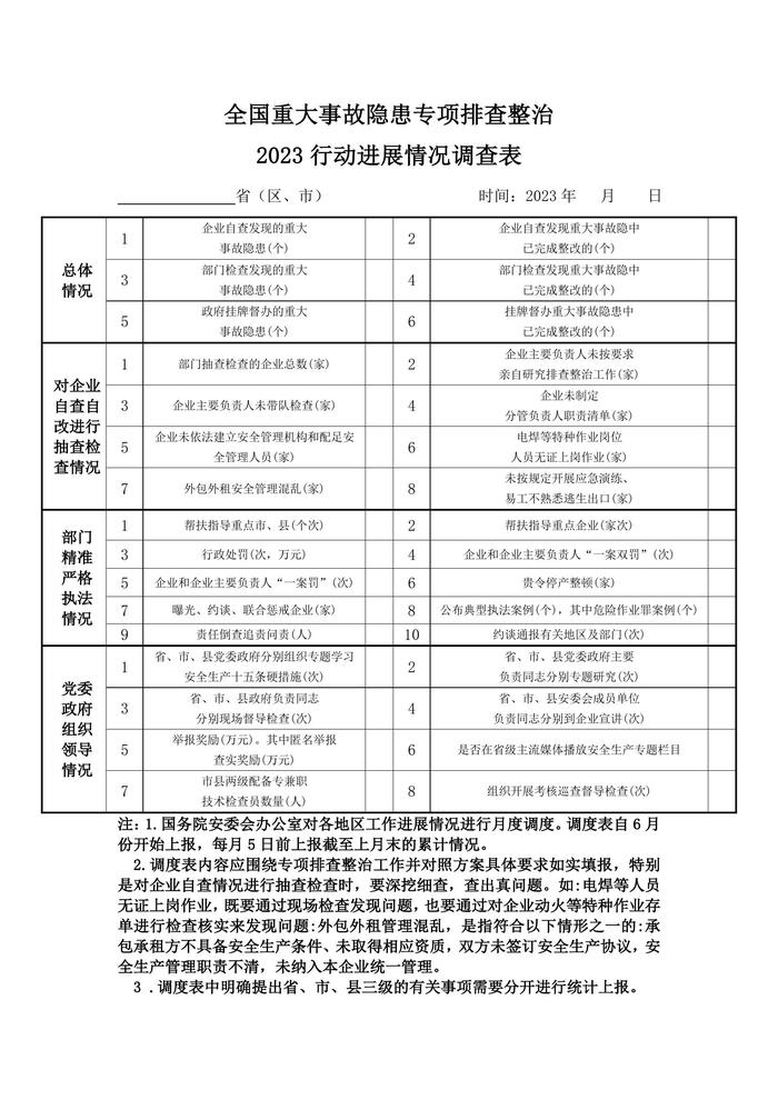 全國(guó)重大事故隱患專(zhuān)項(xiàng)排查整治2023行動(dòng)進(jìn)展情況調(diào)查表docx