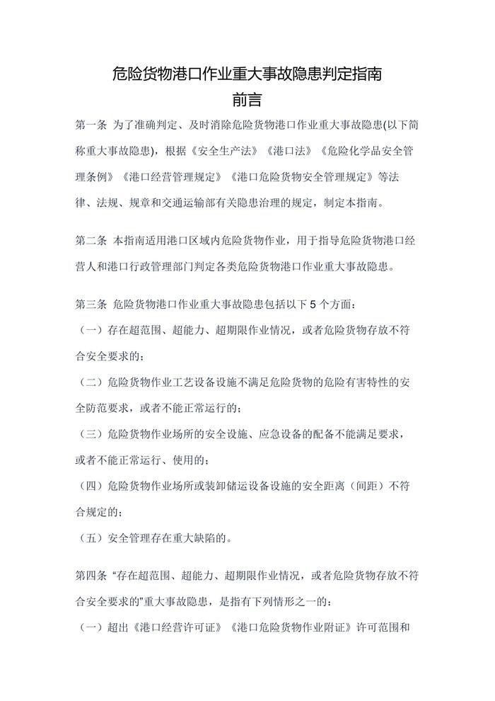 危險貨物港口作業(yè)重大事故隱患判定指南docx