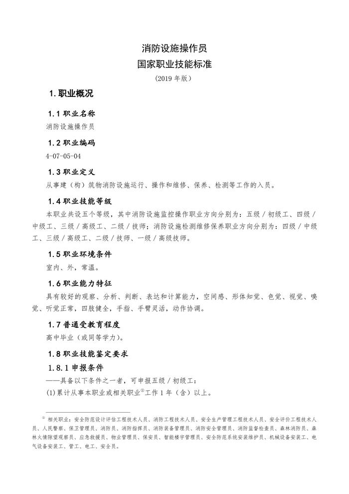 消防設(shè)施操作員國家職業(yè)技能標(biāo)準(zhǔn)(2019年版)docx