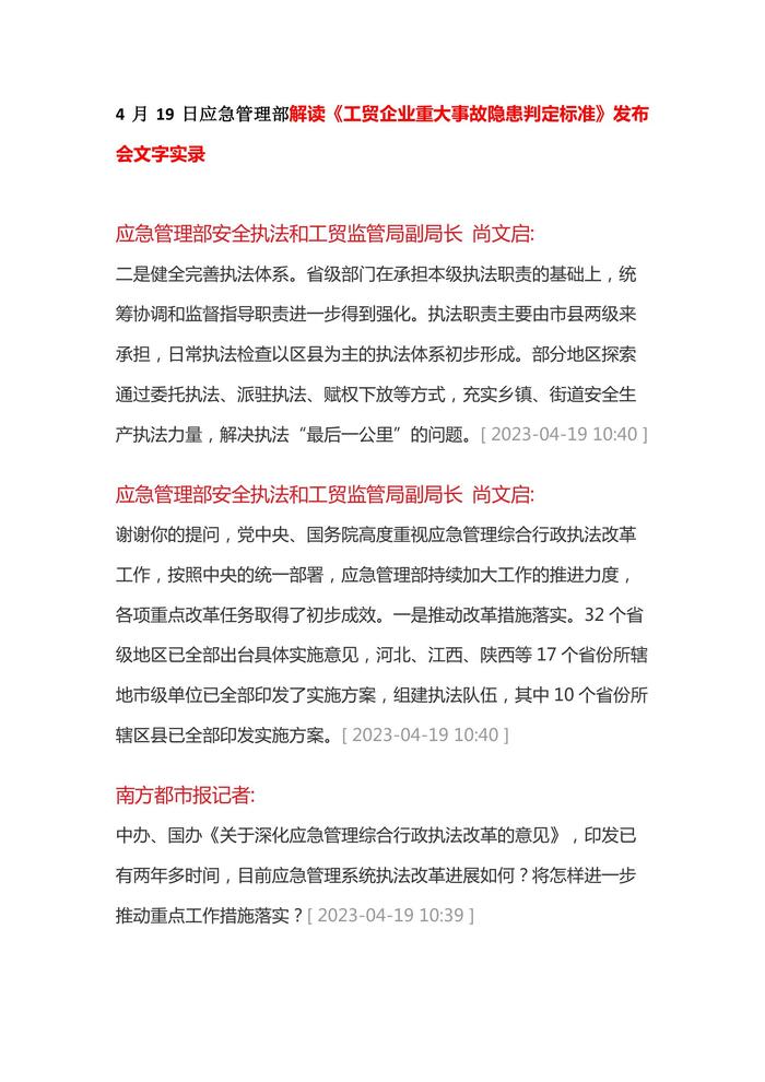 4月19日應急管理部解讀《工貿(mào)企業(yè)重大事故隱患判定標準》發(fā)布會文字實錄docx