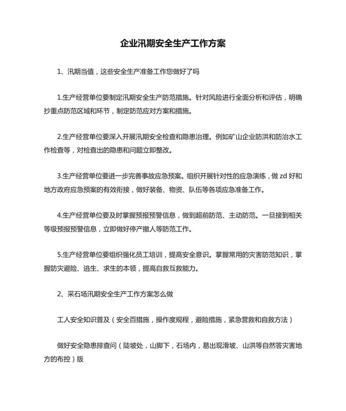 企業(yè)汛期安全生產(chǎn)工作方案安全生產(chǎn)docx