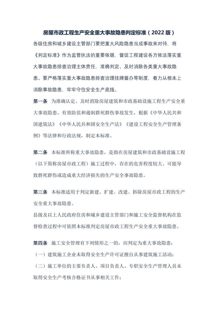 房屋市政工程生產(chǎn)安全重大事故隱患判定標(biāo)準(zhǔn)(建質(zhì)規(guī)〔2022〕2號(hào))docx