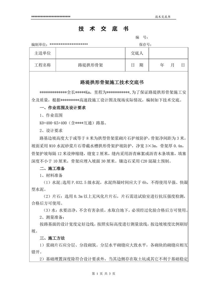 路堤拱形骨架技術(shù)交底doc