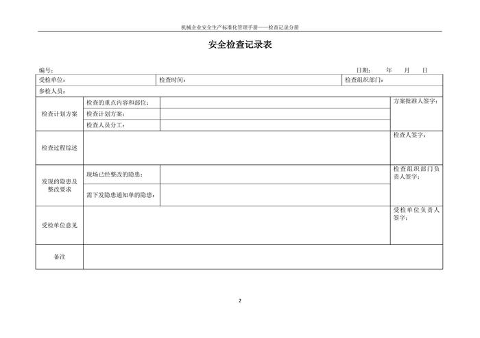 機械企業(yè)安全標(biāo)準化--檢查記錄分冊docx