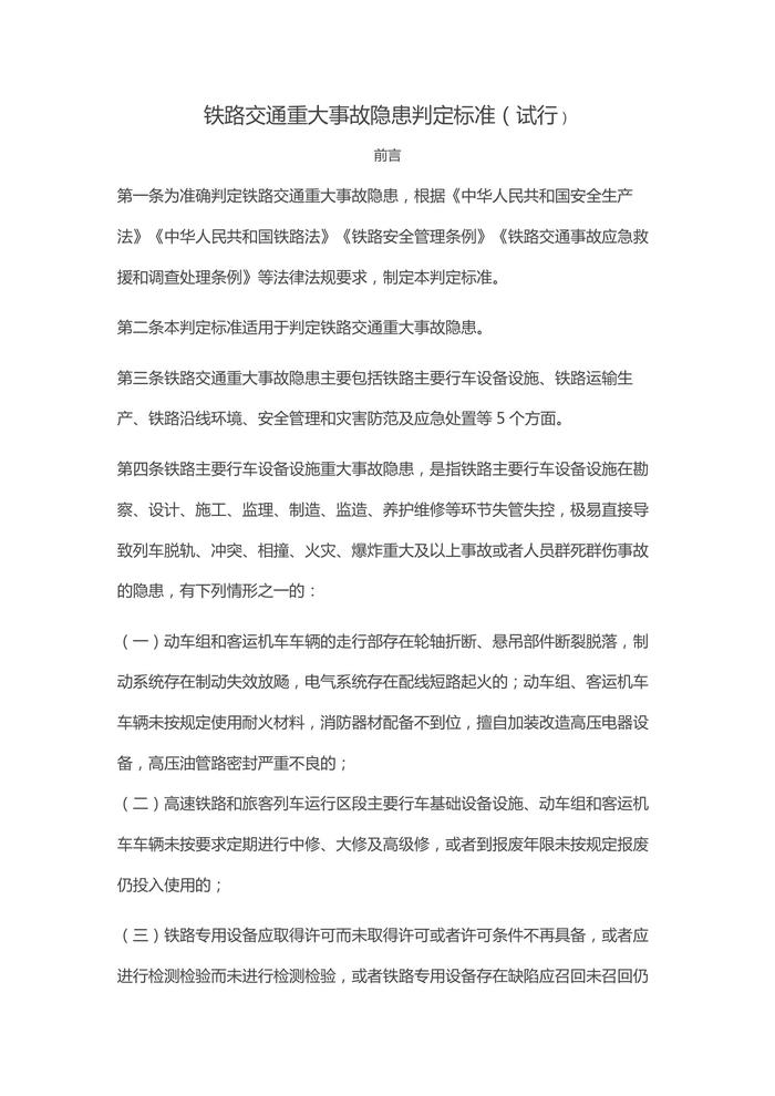 鐵路交通重大事故隱患判定標準(試行)docx