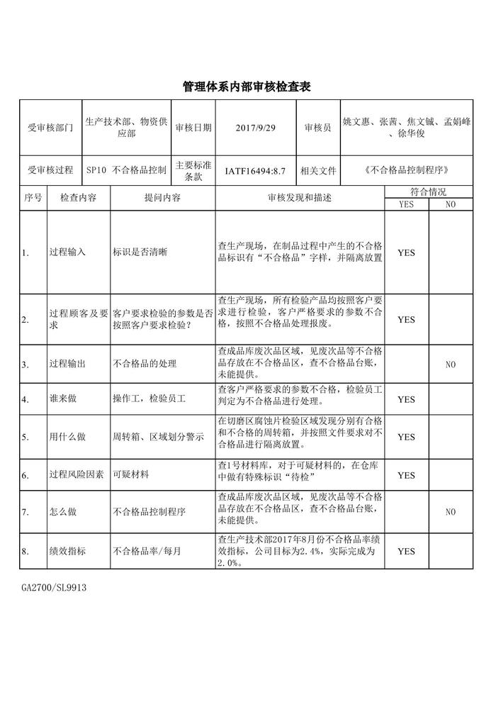 管理體系內(nèi)部審核檢查表-和xls