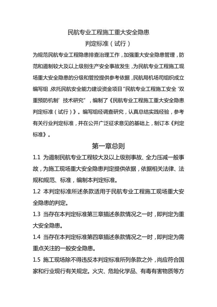 民航專業(yè)工程施工重大安全隱患判定標準(試行)docx