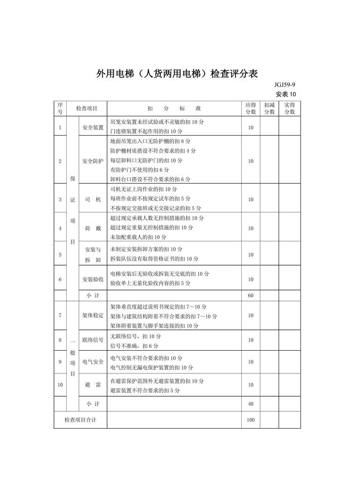 外用電梯(人貨兩用電梯)檢查評(píng)分表doc