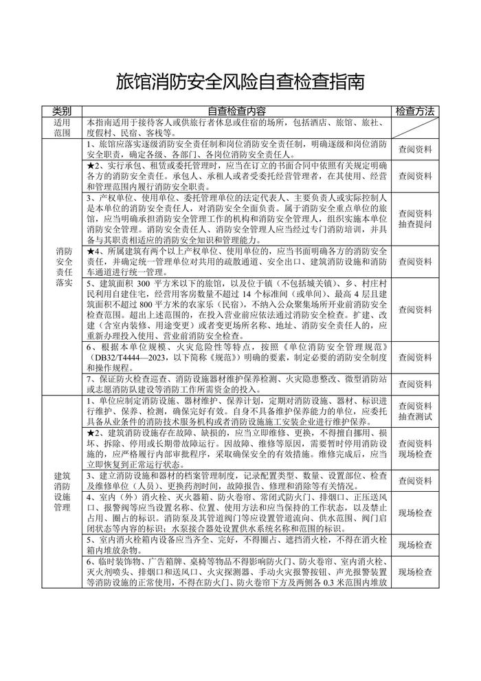 旅館消防安全風險自查檢查指南docx