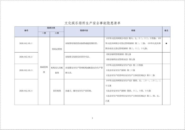 文化娛樂場所生產(chǎn)安全事故隱患清單--有依據(jù)丨20頁doc