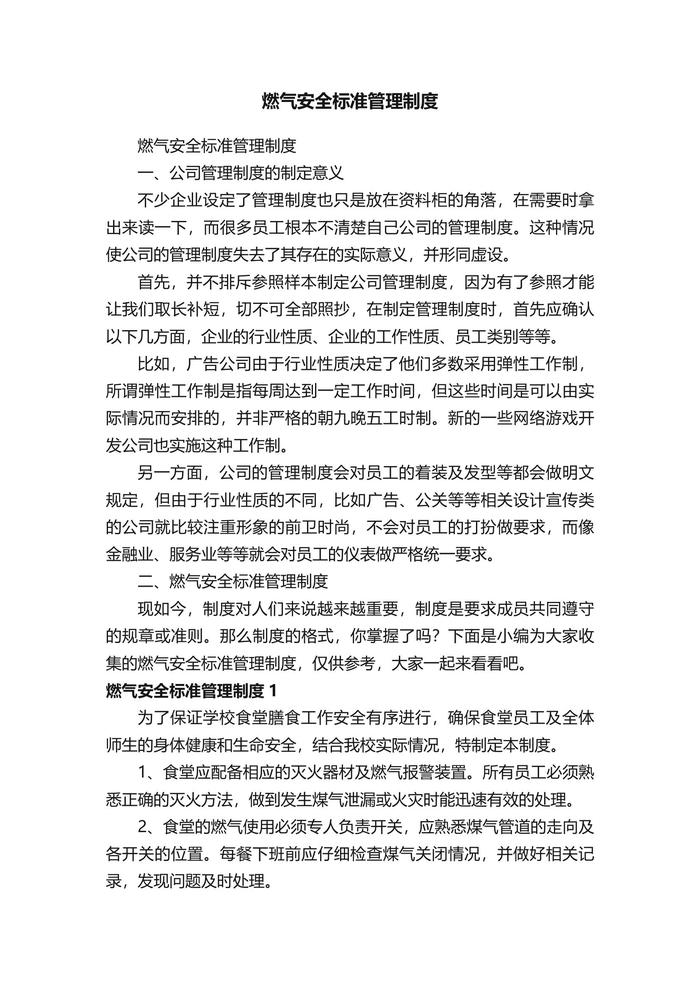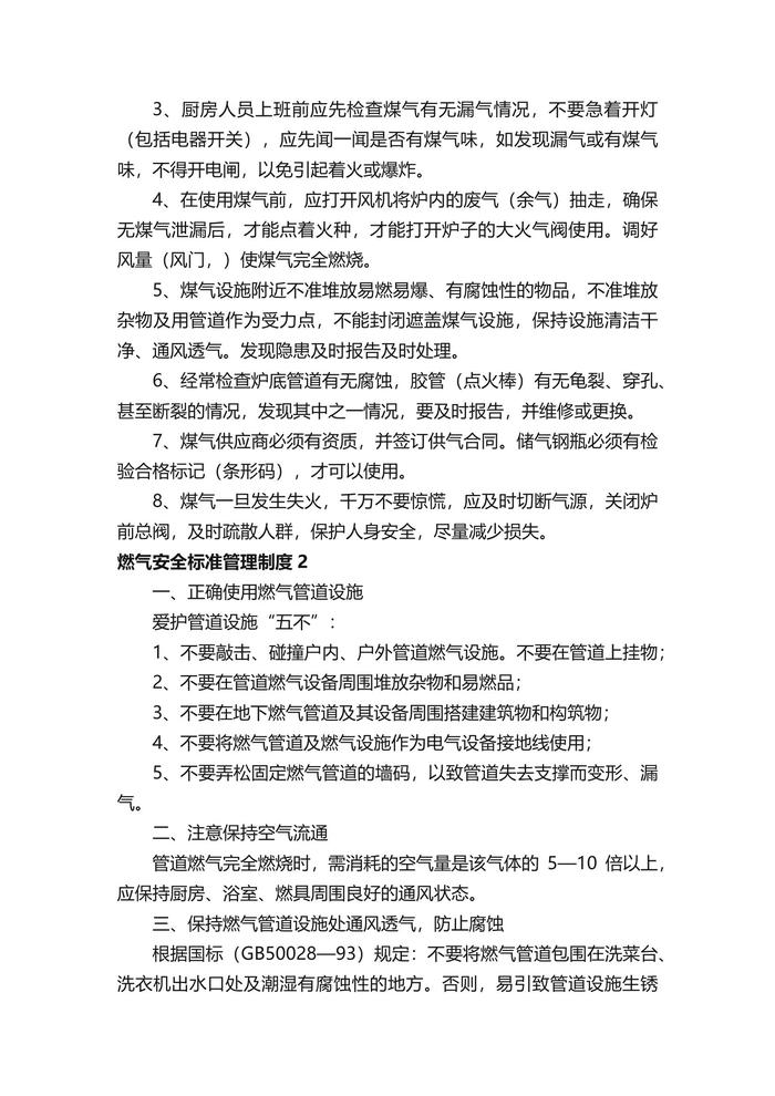 燃氣安全標準管理制度docx