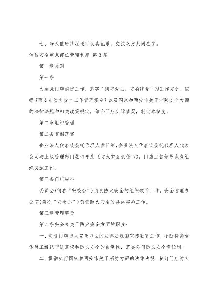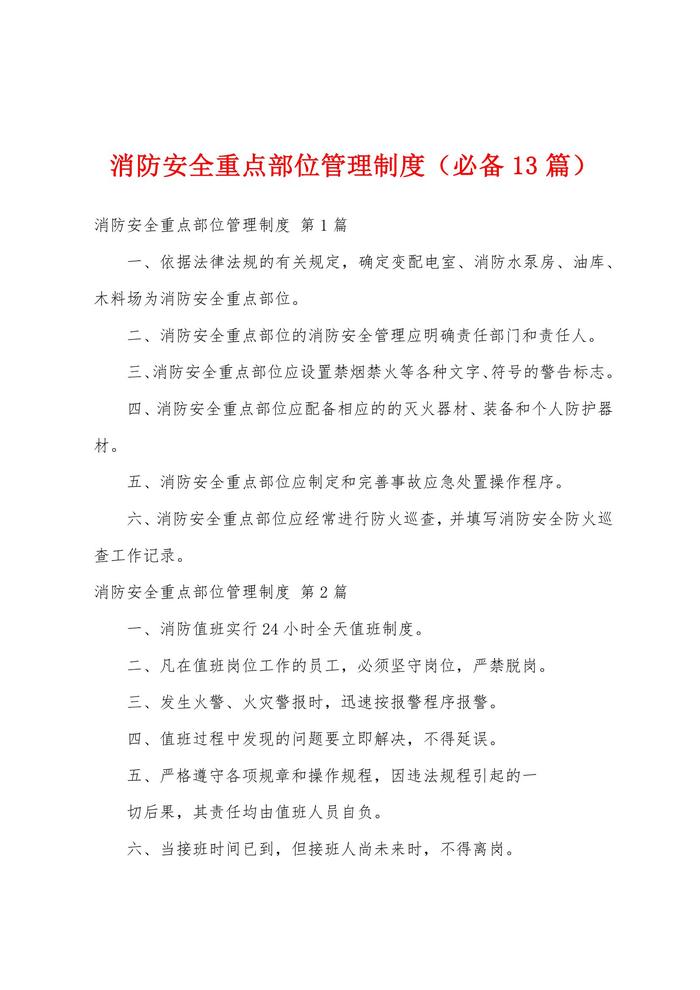 消防安全重點部位管理制度(必備13篇)docx