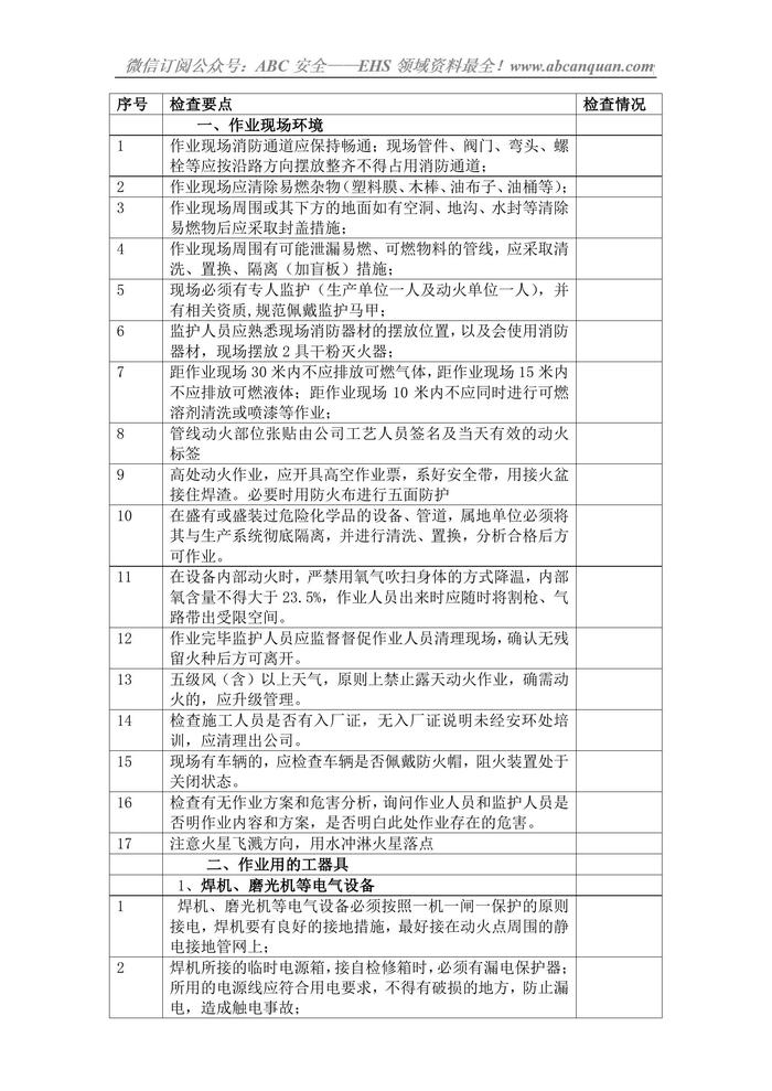 檢修動(dòng)火作業(yè)現(xiàn)場安全檢查對(duì)照表doc