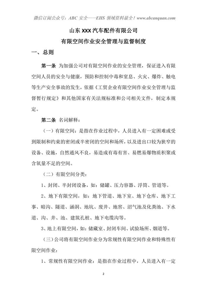 有限空間安全管理制度doc