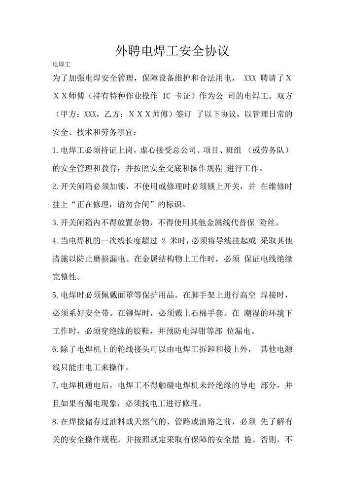 外聘電焊工安全協(xié)議docx
