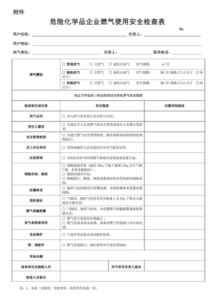 危險化學(xué)品企業(yè)燃?xì)馐褂冒踩珯z查表docx