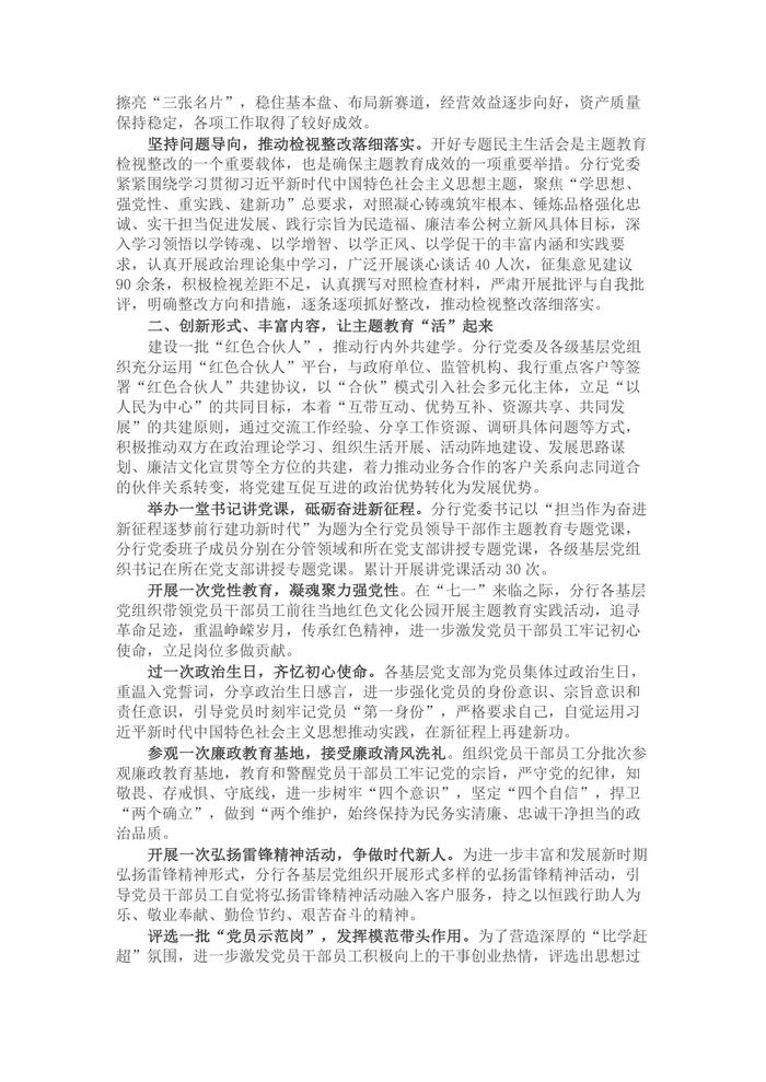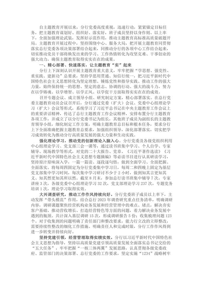 銀行學(xué)習(xí)貫徹2023年主題教育工作情況總結(jié)docx