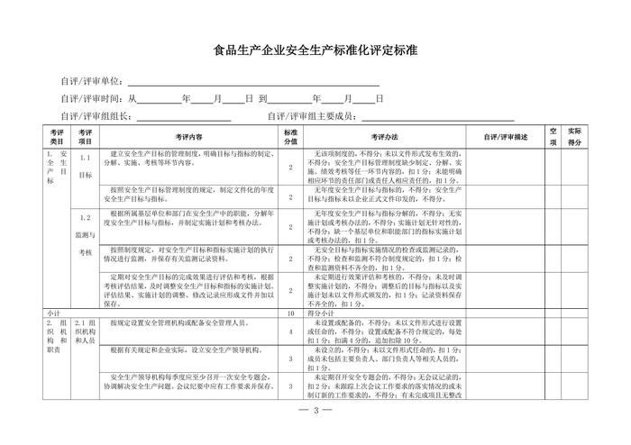 食品生產(chǎn)企業(yè)安全生產(chǎn)標(biāo)準(zhǔn)化評定標(biāo)準(zhǔn)doc