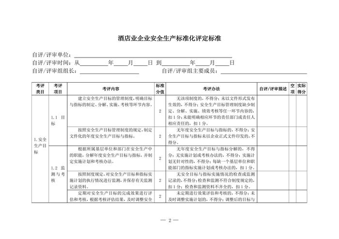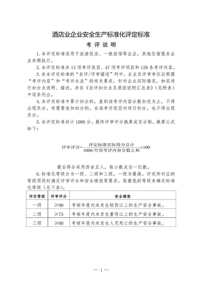 酒店業(yè)企業(yè)安全生產(chǎn)標(biāo)準(zhǔn)化評(píng)定標(biāo)準(zhǔn)doc