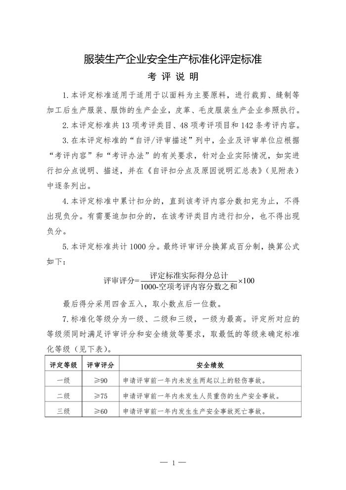 服裝生產(chǎn)企業(yè)安全生產(chǎn)標(biāo)準(zhǔn)化評定標(biāo)準(zhǔn)doc