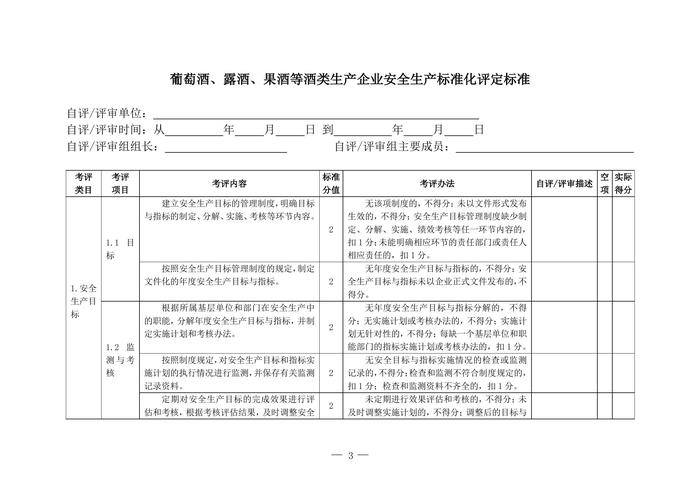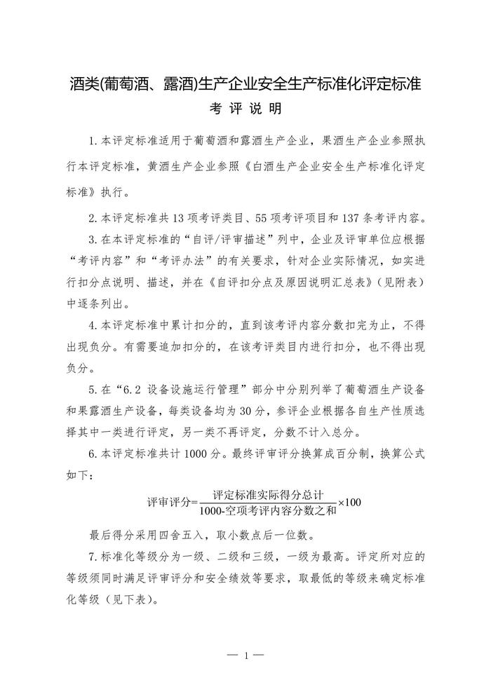 酒類(葡萄酒、露酒)生產(chǎn)企業(yè)安全生產(chǎn)標(biāo)準(zhǔn)化評定標(biāo)準(zhǔn)doc 酒類(葡萄酒、露酒)生產(chǎn)企業(yè)安全生產(chǎn)標(biāo)準(zhǔn)化評定標(biāo)準(zhǔn)doc
