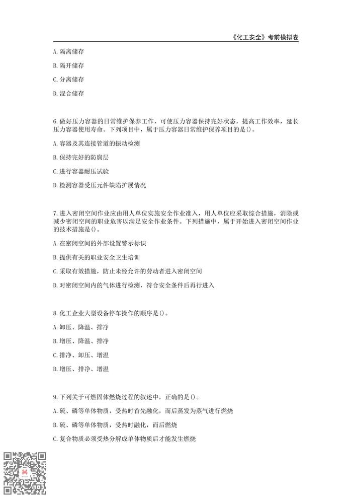 注冊(cè)安全工程師《化工安全》白金密卷pdf