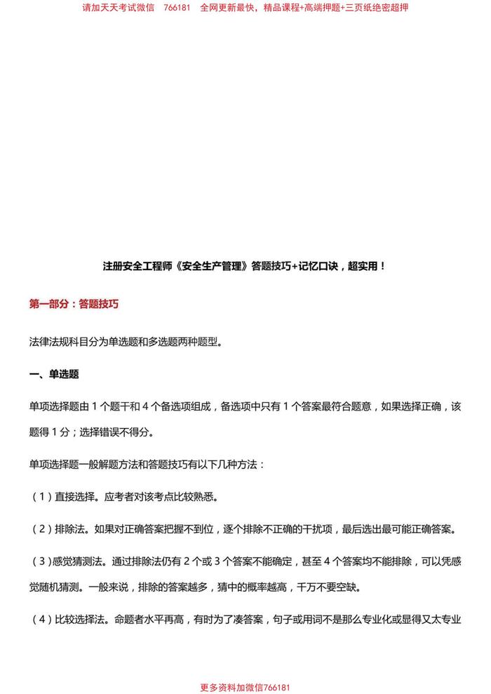 注冊安全工程師安全生產(chǎn)管理題班-答題技巧+記憶口訣10頁pdf