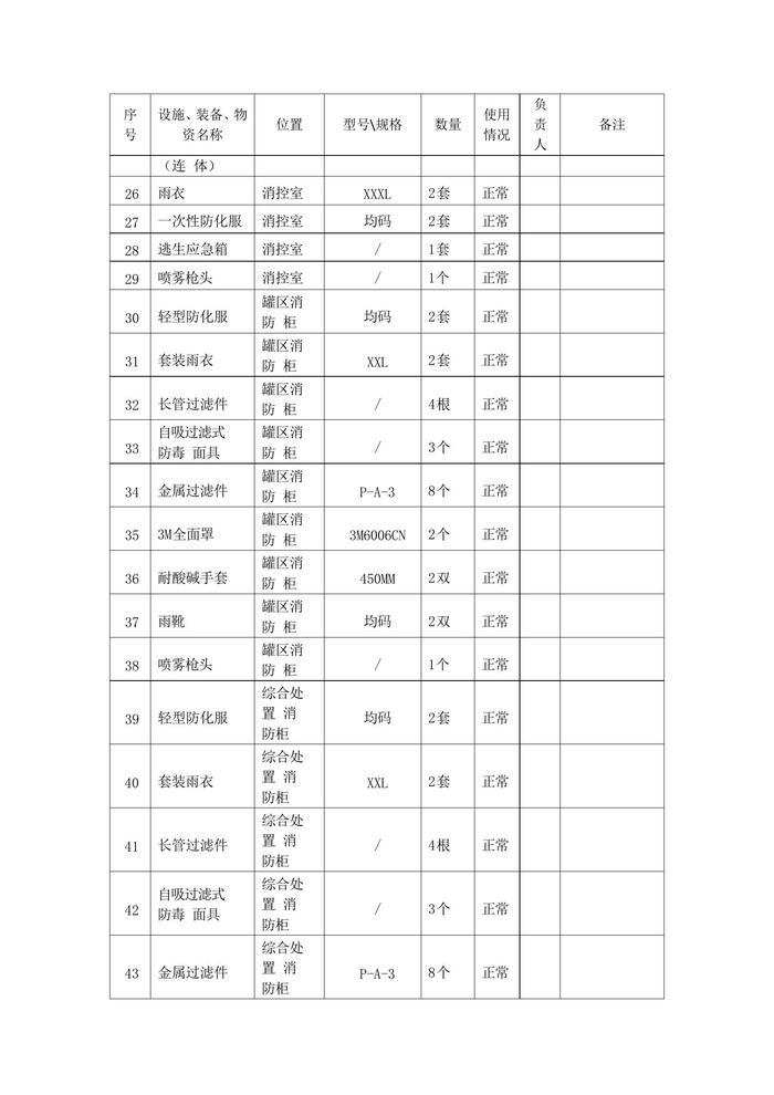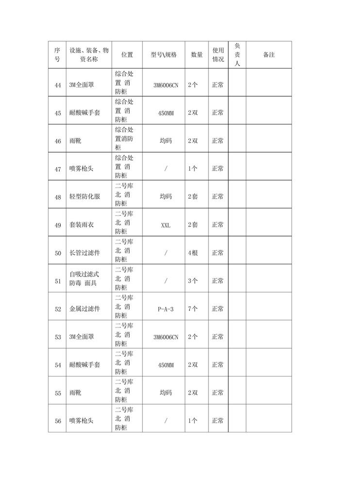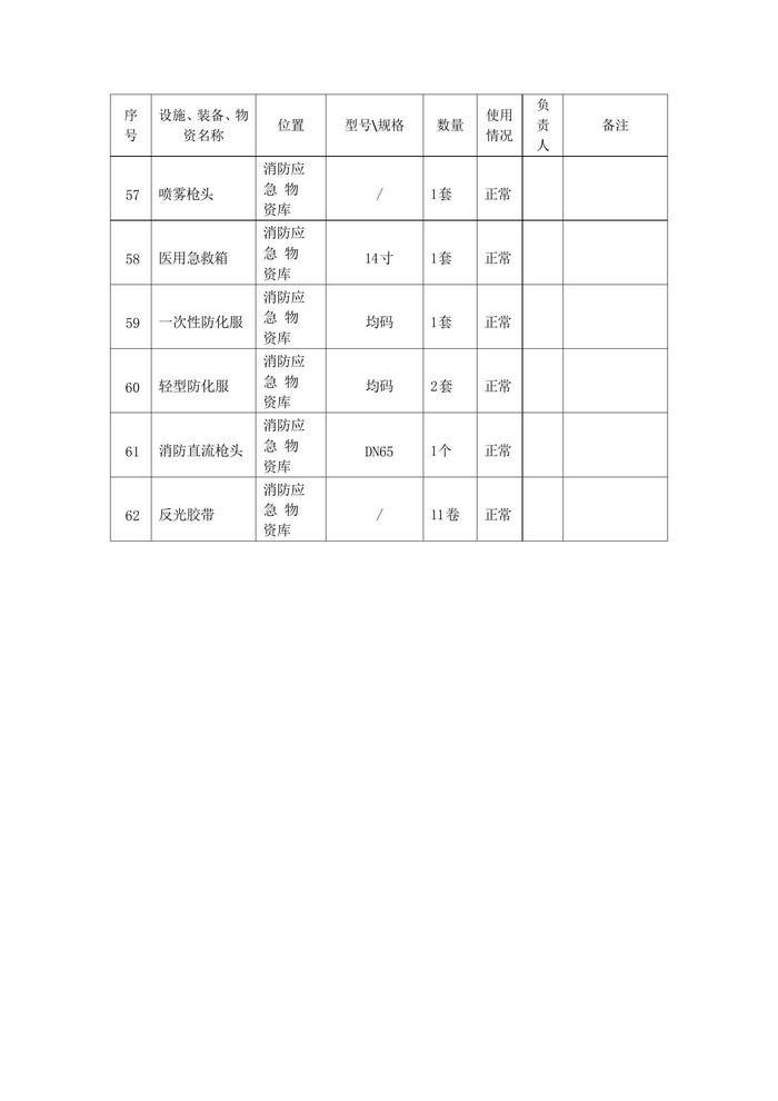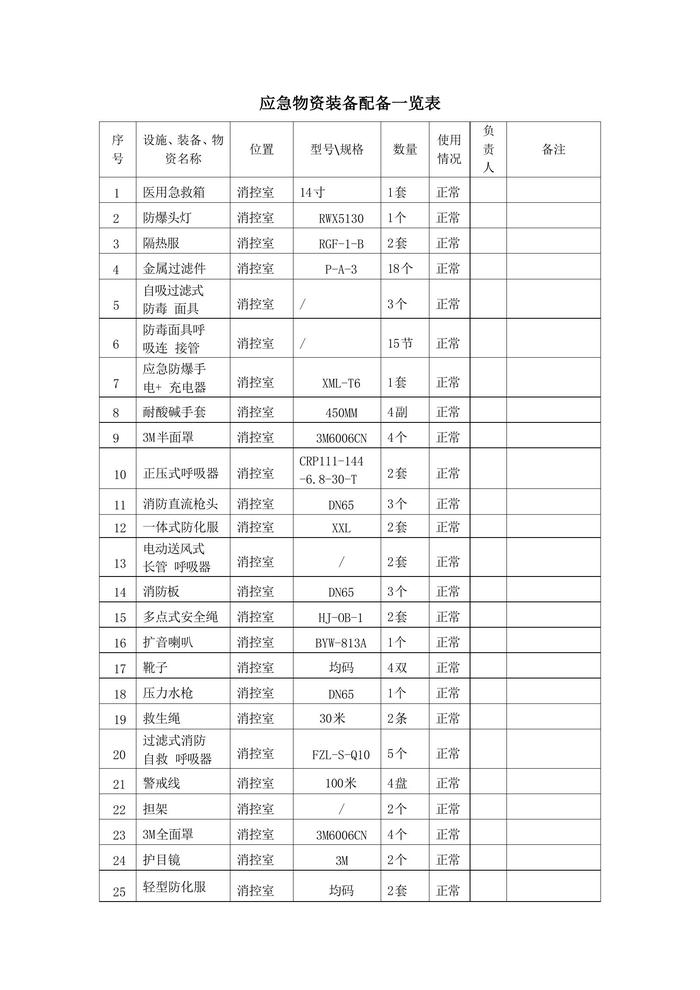 應急物資裝備配備一覽表docx