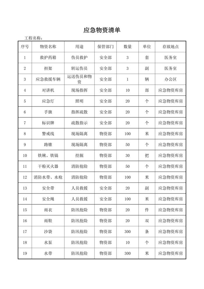 應(yīng)急物資清單docx