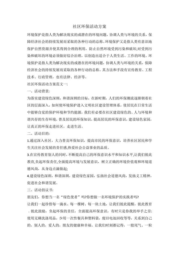 社區(qū)環(huán)?;顒?dòng)方案doc 社區(qū)環(huán)保活動(dòng)方案doc