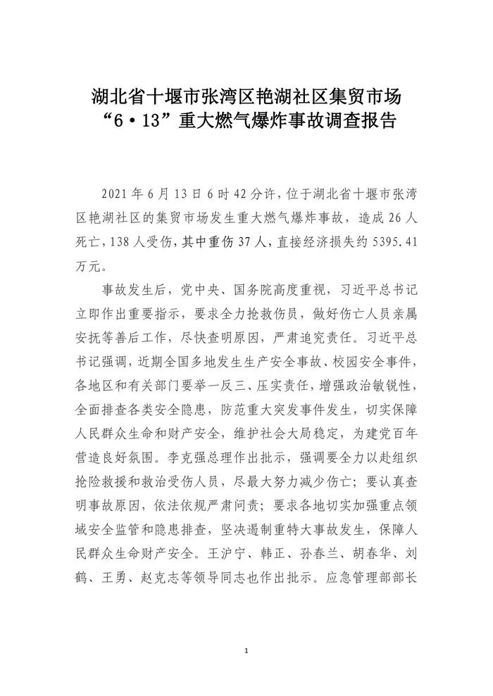 湖北十堰市張灣區(qū)艷湖社區(qū)集貿(mào)市場“6·13”重大燃氣爆炸事故調(diào)查報告pdf