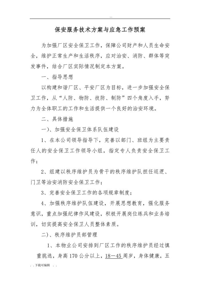 保安服務(wù)技術(shù)方案與應(yīng)急工作預(yù)案doc