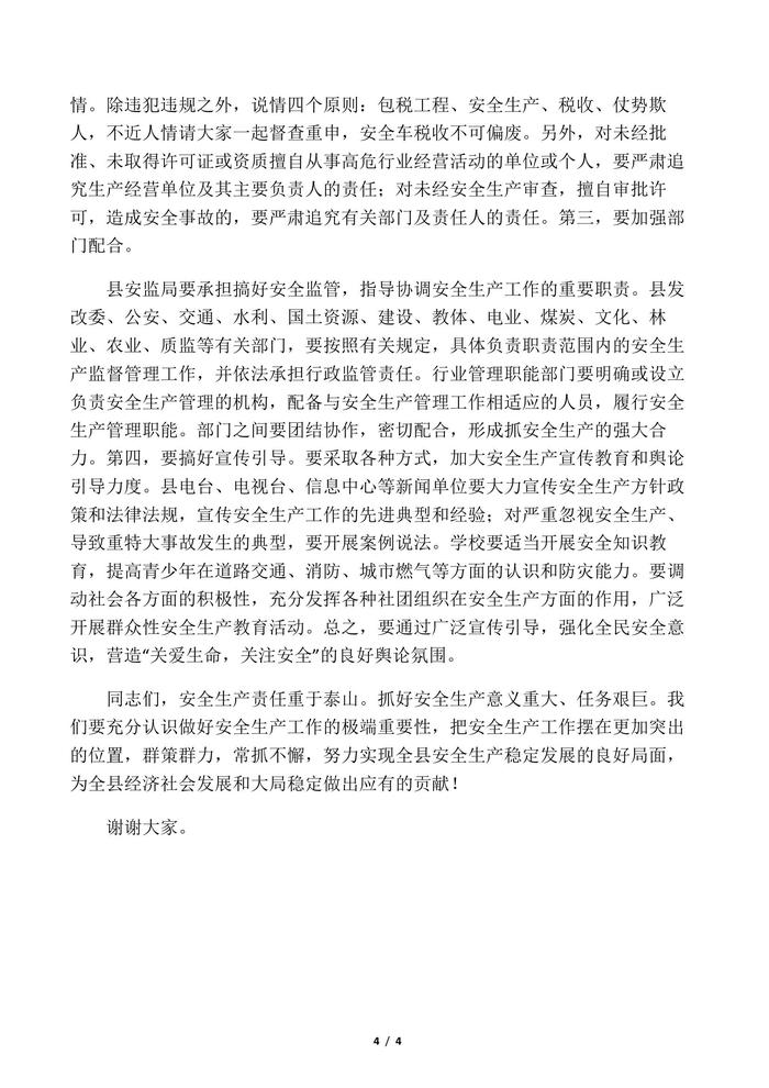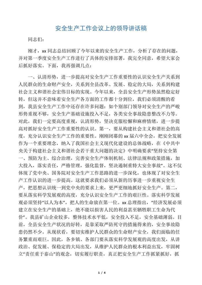 安全生產(chǎn)工作會議上的領(lǐng)導(dǎo)講話稿docx