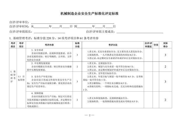 機(jī)械制造企業(yè)安全生產(chǎn)標(biāo)準(zhǔn)化評定標(biāo)準(zhǔn)doc