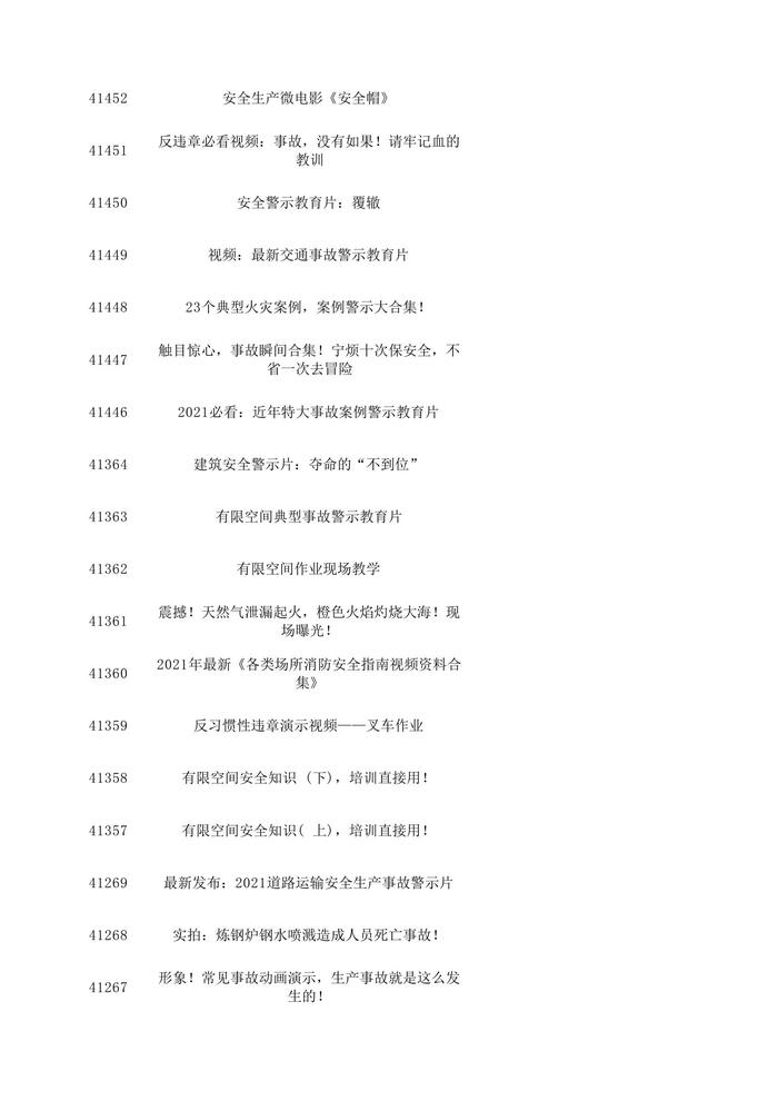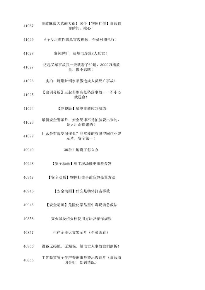 各種安全事故培訓(xùn)教育視頻鏈接需要的速度下載,xlsx