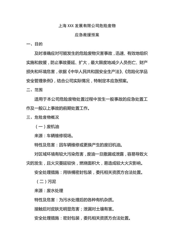 公司危險(xiǎn)廢物應(yīng)急救援預(yù)案doc