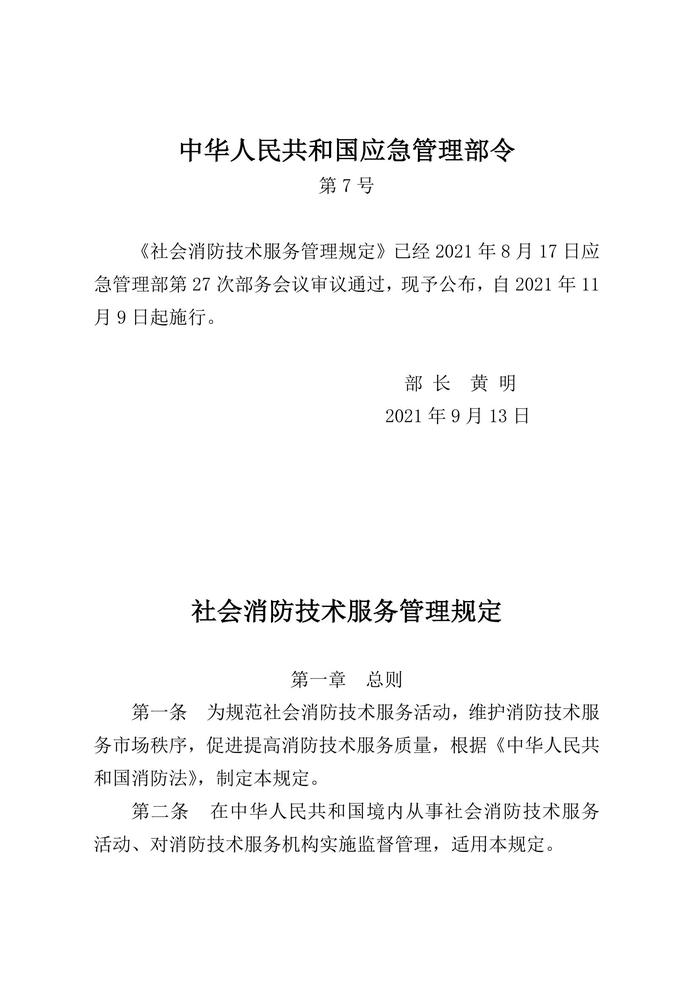 應(yīng)急管理部令(第7號)《社會消防技術(shù)服務(wù)管理規(guī)定》doc