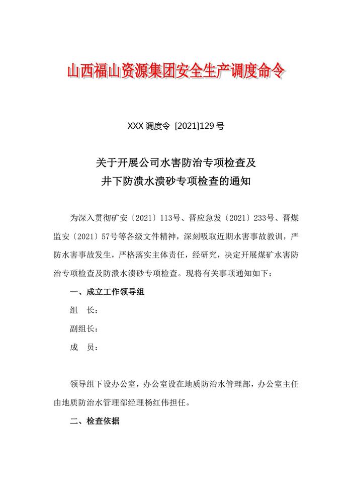 山西福山資源集團(tuán)安全生產(chǎn)調(diào)度命令docx